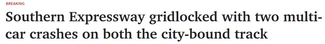 周二上午,Southern Expressway陷入交通堵塞,城市方向的道路上发生多车相撞事故,造成混乱。 虽然目前还没有人员伤亡的报告,但这起事故影响了早高峰时段往市区方向的交通。 通勤者称交通处于停滞状态,道 ...