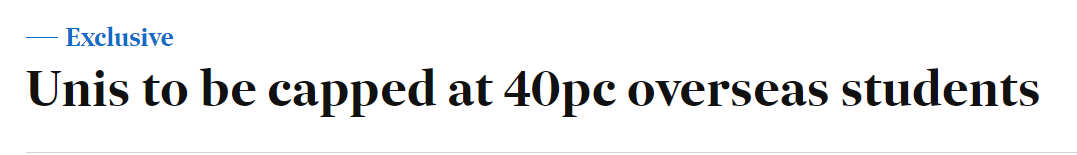 澳媒曝光留学生人数上限,不得超过总人数的40% 据《AFR》最新报道,澳洲各大学将被要求限制海外学生招收比例,不得超过总学生人数的40%。该上限在未来两年内实施,人数以2019年的学生数据为基准。 (图 ...