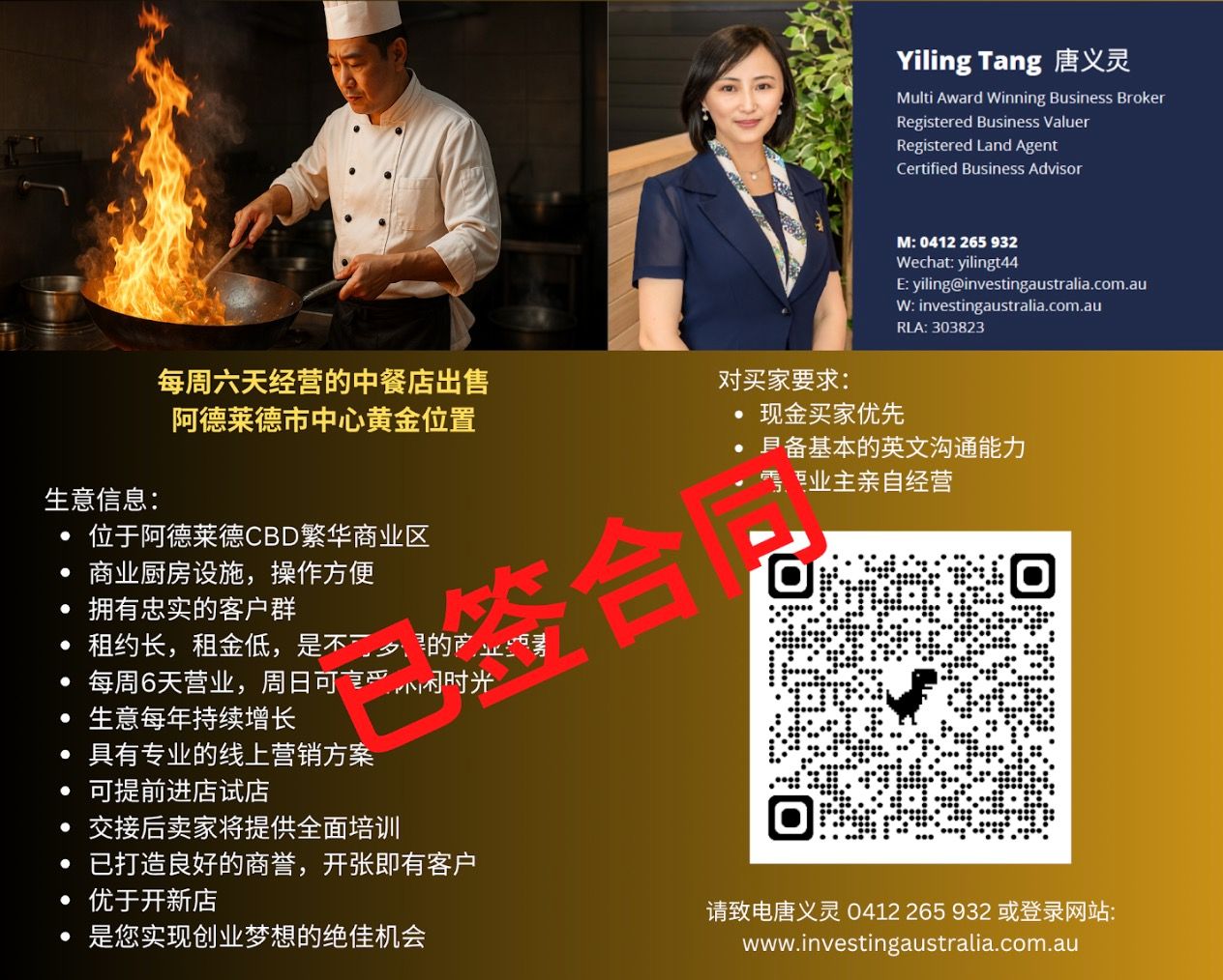 【投资澳洲】阿德莱德市中心成熟经营的中餐外卖及餐馆出售 业务信息:绝佳地段,位于阿德莱德CBD繁华商业区成立超过2年,1年前搬迁至现址长期租约,租金低廉, 并可协助与房东谈判每周营业6天,周日休息——享受良好 ...
