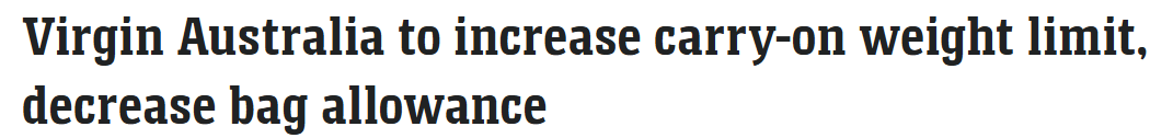 据《news》报道,维珍澳大利亚航空即将实施一项重要的乘机政策变更,但其中存在限制条件。该航司旅客今后可携带更重的手提行李,但允许携带的行李件数将会减少。 7公斤重量限制向来是澳大利亚航空业的普遍标 ...