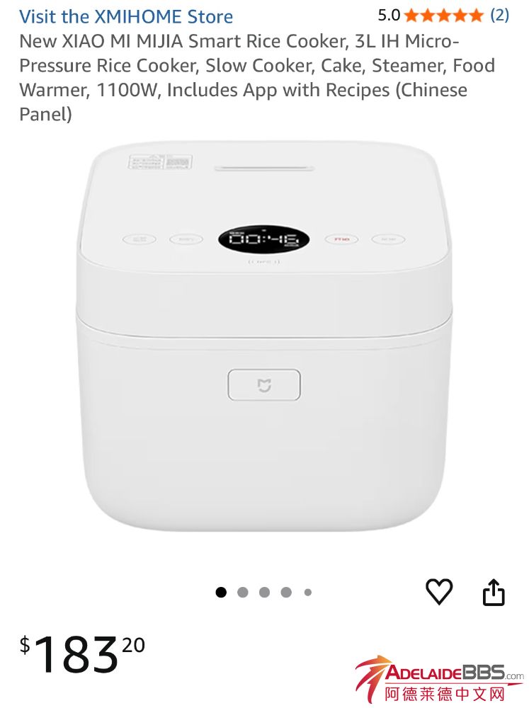 米家智能微壓電飯煲3L 全新,未拆封,品質佳 一鍋多用途 煮飯、微壓力鍋、慢燉鍋、蛋糕、蒸籠、保溫食物通通都可以 米家家電品質有保障 Amazon $183.20 現在只要$109.99