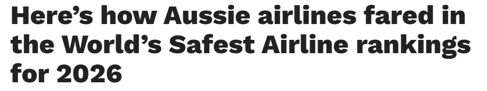 AirlineRatings.com近日发布了2026年度安全排名,澳大利亚的航空公司再次证明其位居全球最安全航空之列,多家本土航司获得顶级认可。 这份年度报告通过对全球超过320家航空公司进行深入分析,评选出"全球最安全全 ...