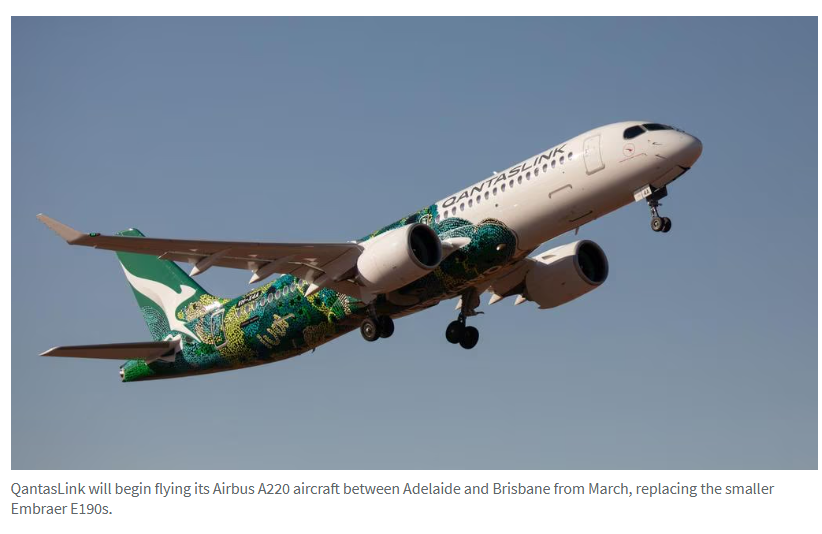 • 澳航将在南澳首次启用空客A220,执飞阿德至布里斯班航线,每年新增10万个座位!