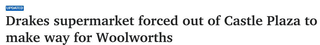 据1月28日报道,一家Drakes超市在经营二十年后将被迫撤出Castle Plaza,其指控业主终止租约是为Woolworths让路。 周三上午,Drake还表示,他认为这家大型连锁企业支付的租金"接近"Drakes在该场地租金的两 ...