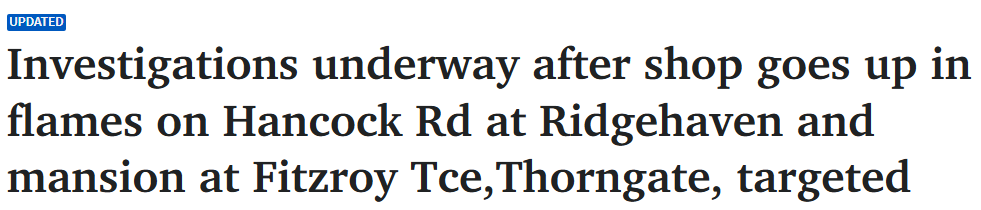 据2月24日报道,阿德东北郊区的一家理发店夜间起火被烧毁,同时相距16公里的一处豪宅也遭纵火,警方称这两起火灾均存在可疑之处。 周二凌晨2点刚过,消防员首次接到报警,赶往Ridgehaven的Hancock Rd火灾现场。 ...