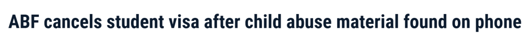 据《ABF》报道,一名计划赴澳攻读幼儿教育专业的中国公民,本周因手机内被发现虐童材料,遭澳大利亚边境执法部门取消学生签证。 数据显示,2024年1月1日至2025年12月31日期间,边境执法局官员已在全澳各机场 ...