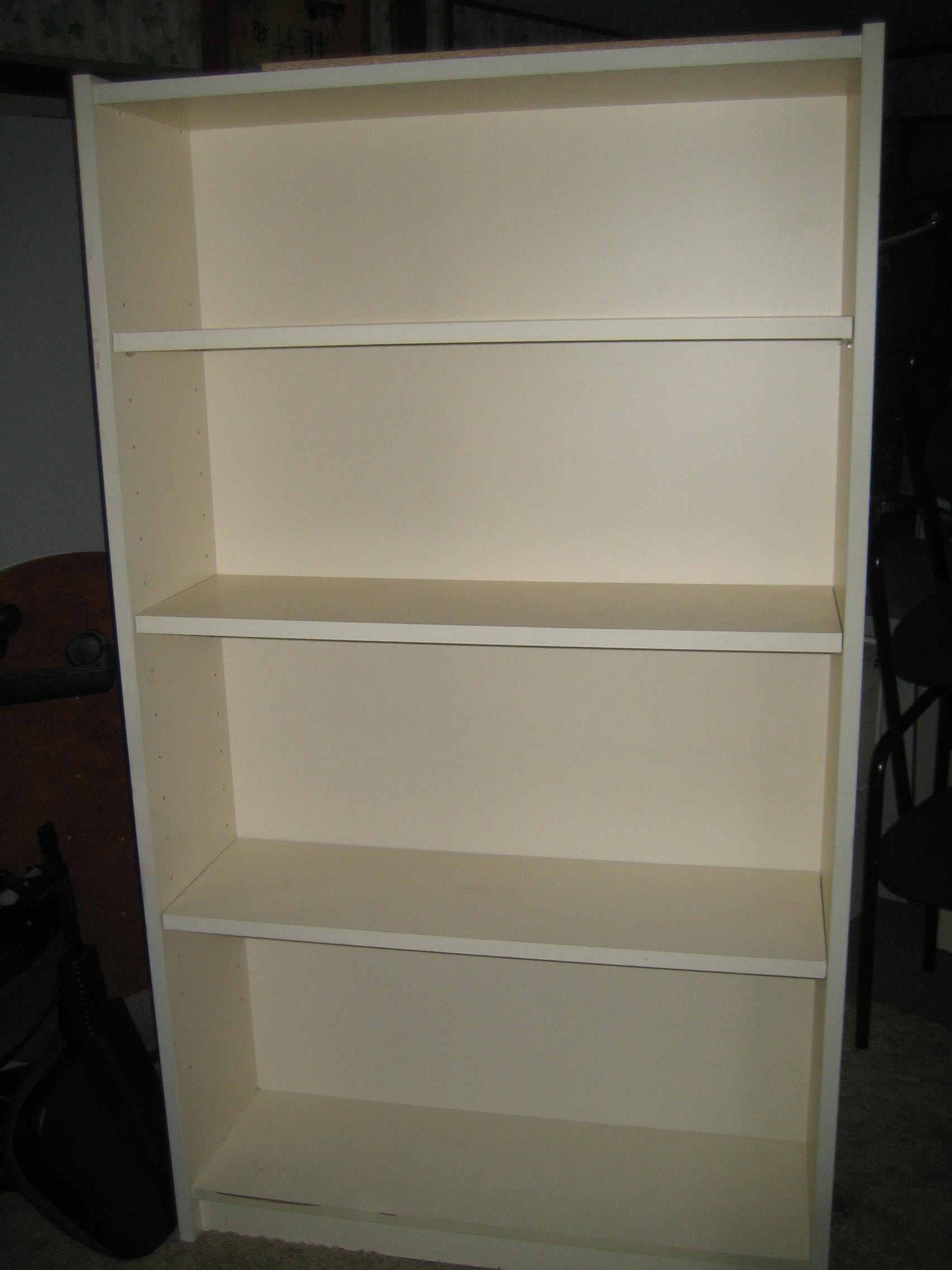请看图吧 很结实美观的书架 高有1米八的样子 隔板可以随意放 白白的 侧面 65刀 联系电话 0425608472 谢谢