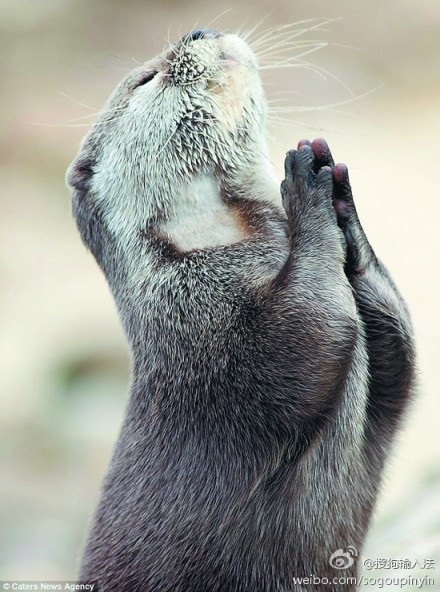 虔诚水獭—“上帝啊,请赐给我一条鱼吧,阿门!”英国摄影师克洛德金斯基在寒冬中守候2小时后拍下这张水獭“祈祷”的照片。 照片中的小水獭直起身子,双爪合十,嘴里念念有词,虔诚的模样简直萌爆了! ...