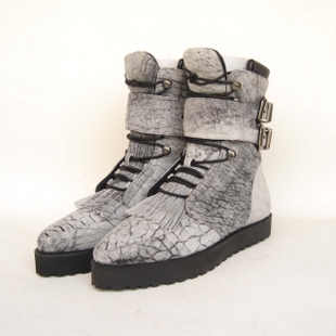 亚历山大王 灰色羊皮搭扣流苏靴
