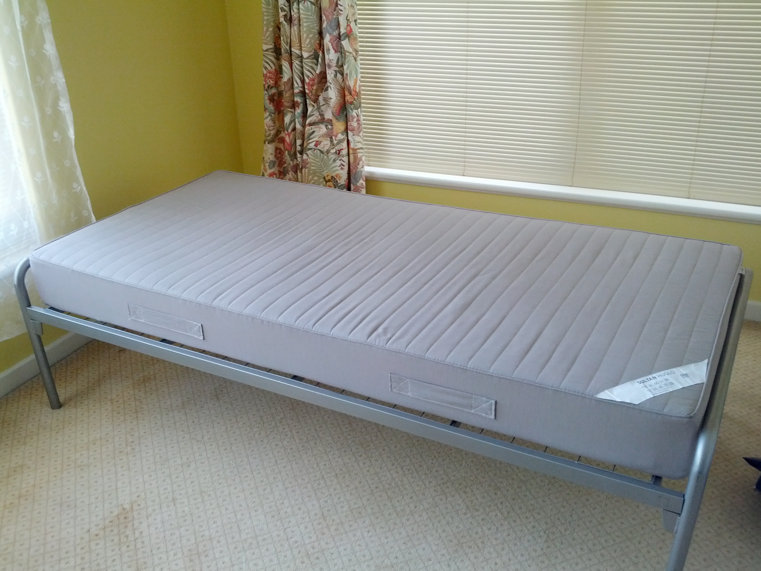 本帖最后由 dollarzhang 于 2013-4-2 15:56 编辑 便宜出售一个用了4个月的单人床架+床垫,$45刀,全搬走。另外附赠一个价值25刀的双人沙发床床架子。没拍照片呢 。