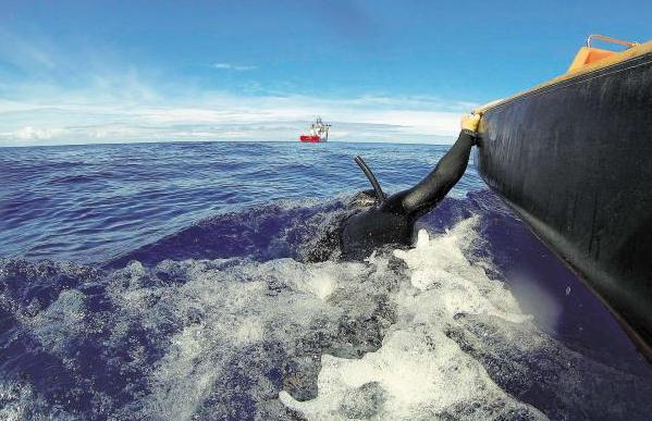 澳大利亚海军前天出动蛙人搜索马航客机残骸。一名蛙人由搜救“海洋之盾”号放下的小艇拖着并向下探视,另有蛙人潜入任务海区水下,希望发现没有浮上海面的客机残骸。(法新社) 新华网北京4月9日 ...