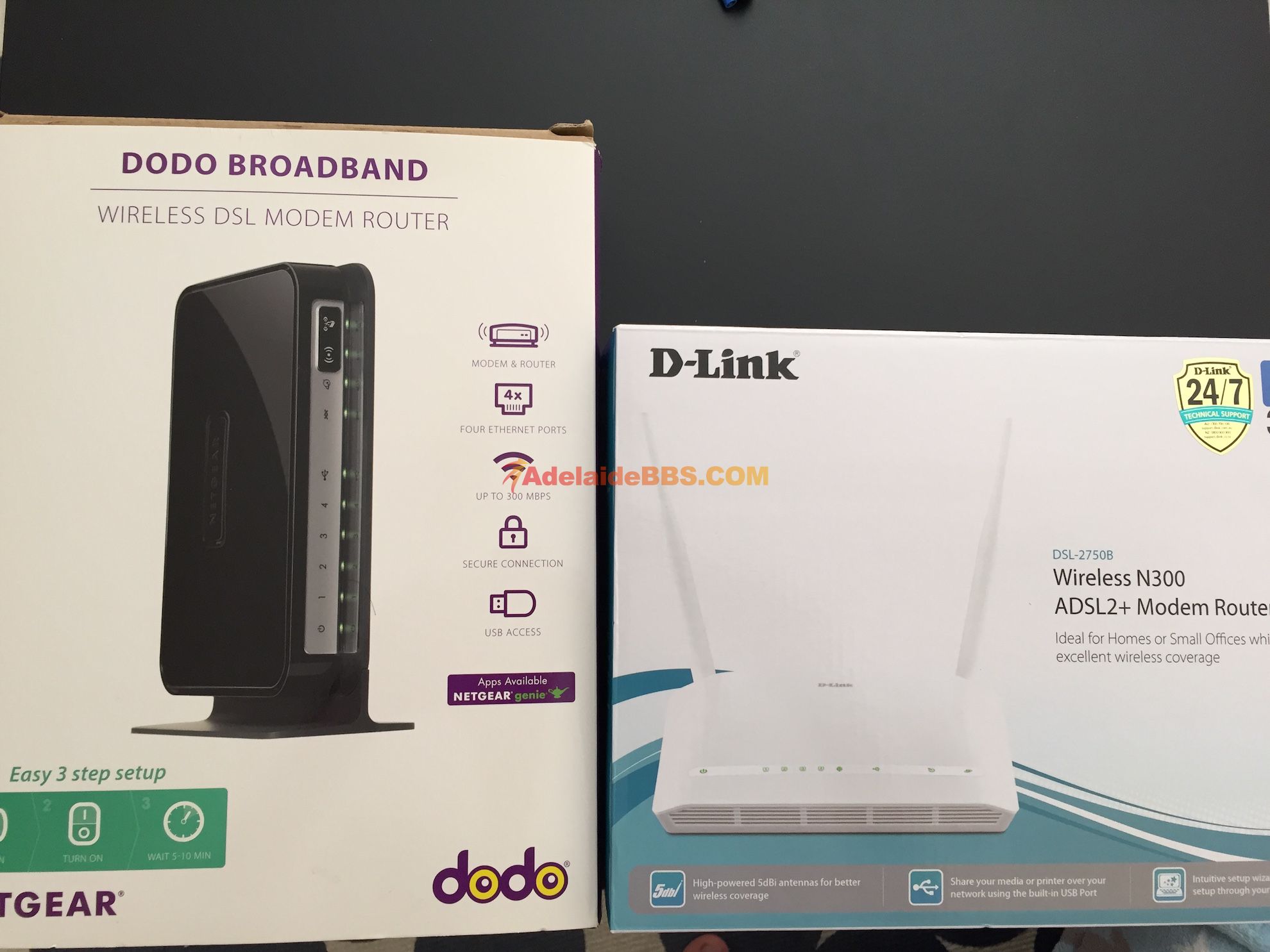 本帖最后由 kasimmm 于 8-3-2016 11:13 AM 编辑 只剩左边的Netgear的了。$25只要是ADSL网都可以用,不仅限于DODO的。 工作正常。配件齐全 联系:0451188669(SMS)