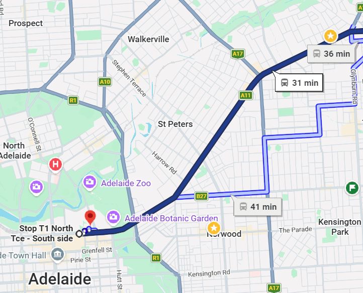 1. 位于城边东南Greenhill Rd 和 Glen Osmond Rd 交界处<渔米家饭店附近>,bus第三站.