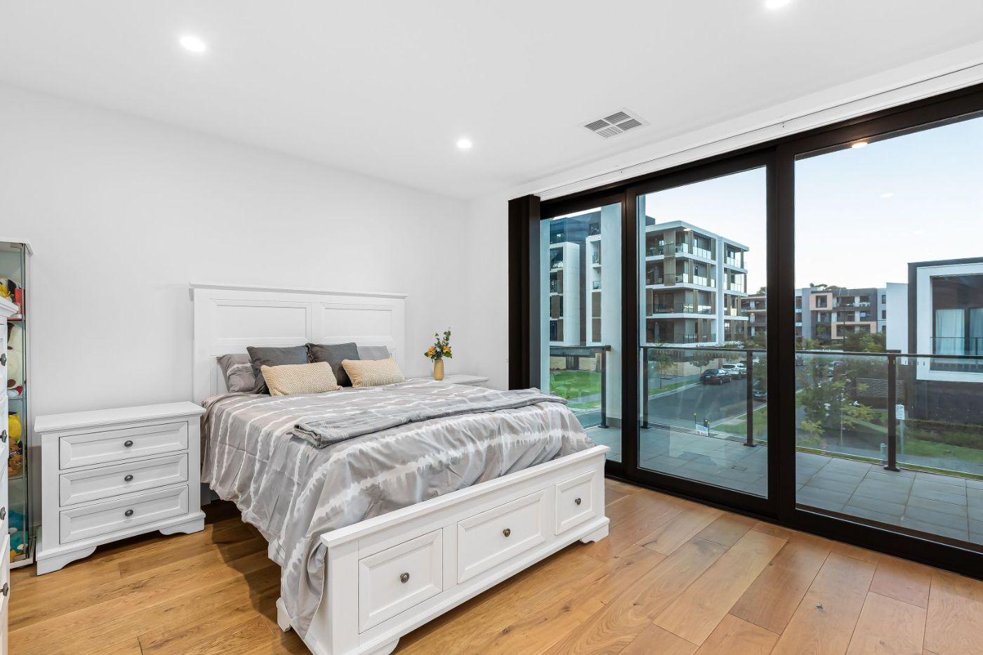 -楼上主卧室,带宽阔的观景阳台,可欣赏绿树成荫的景色,配有BIR 和独立卫浴