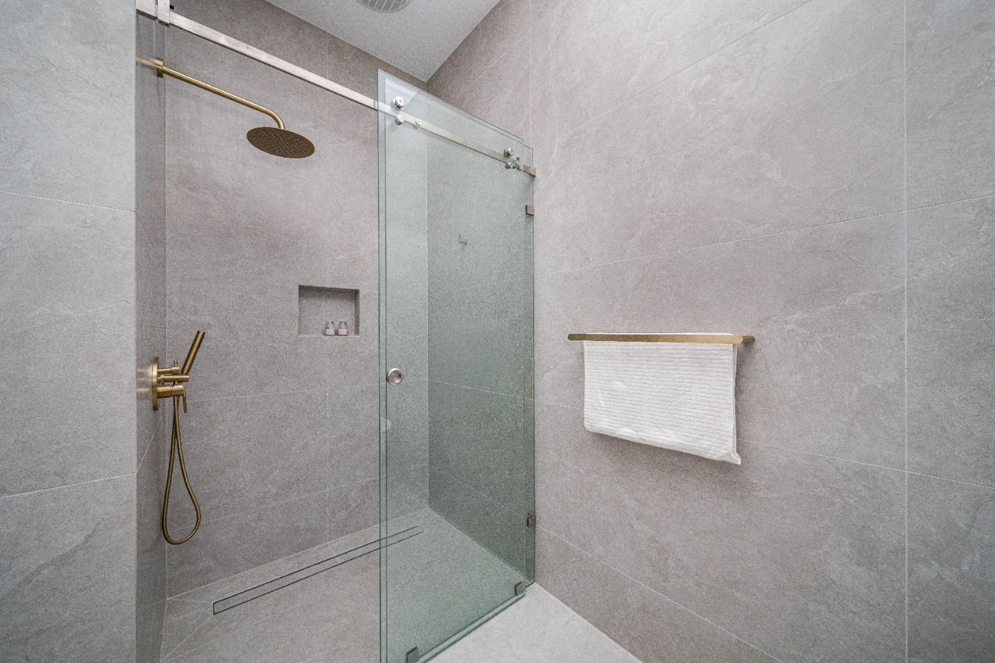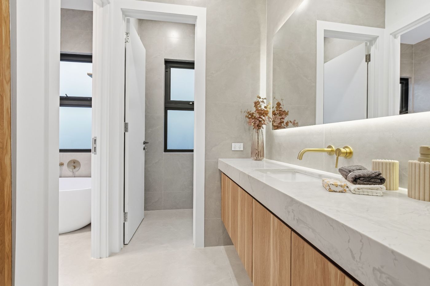 奢华套间浴室采用高端饰面 + 隐藏式水箱马桶