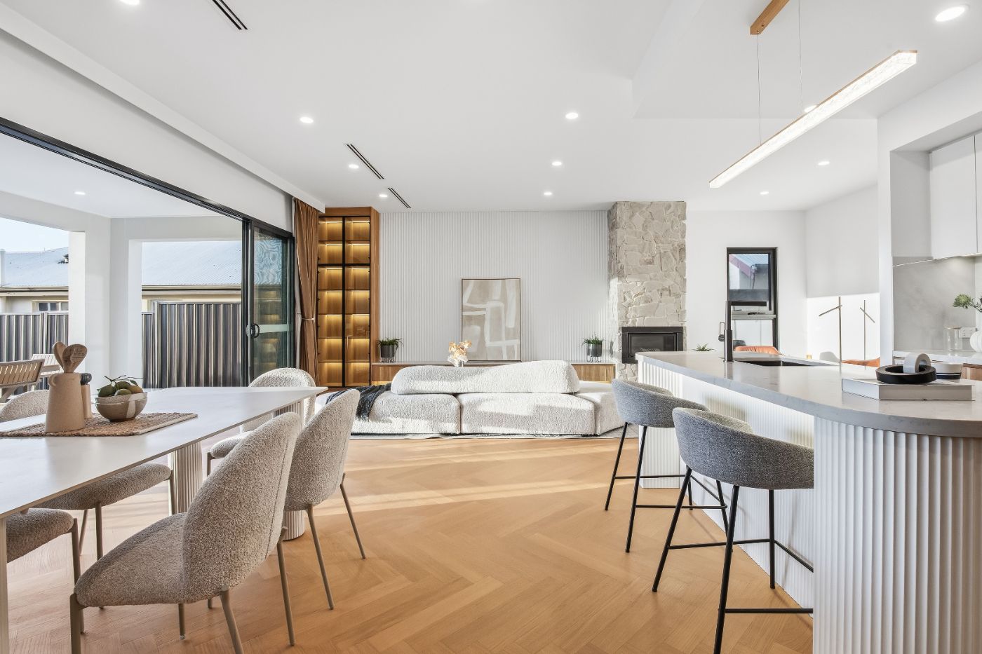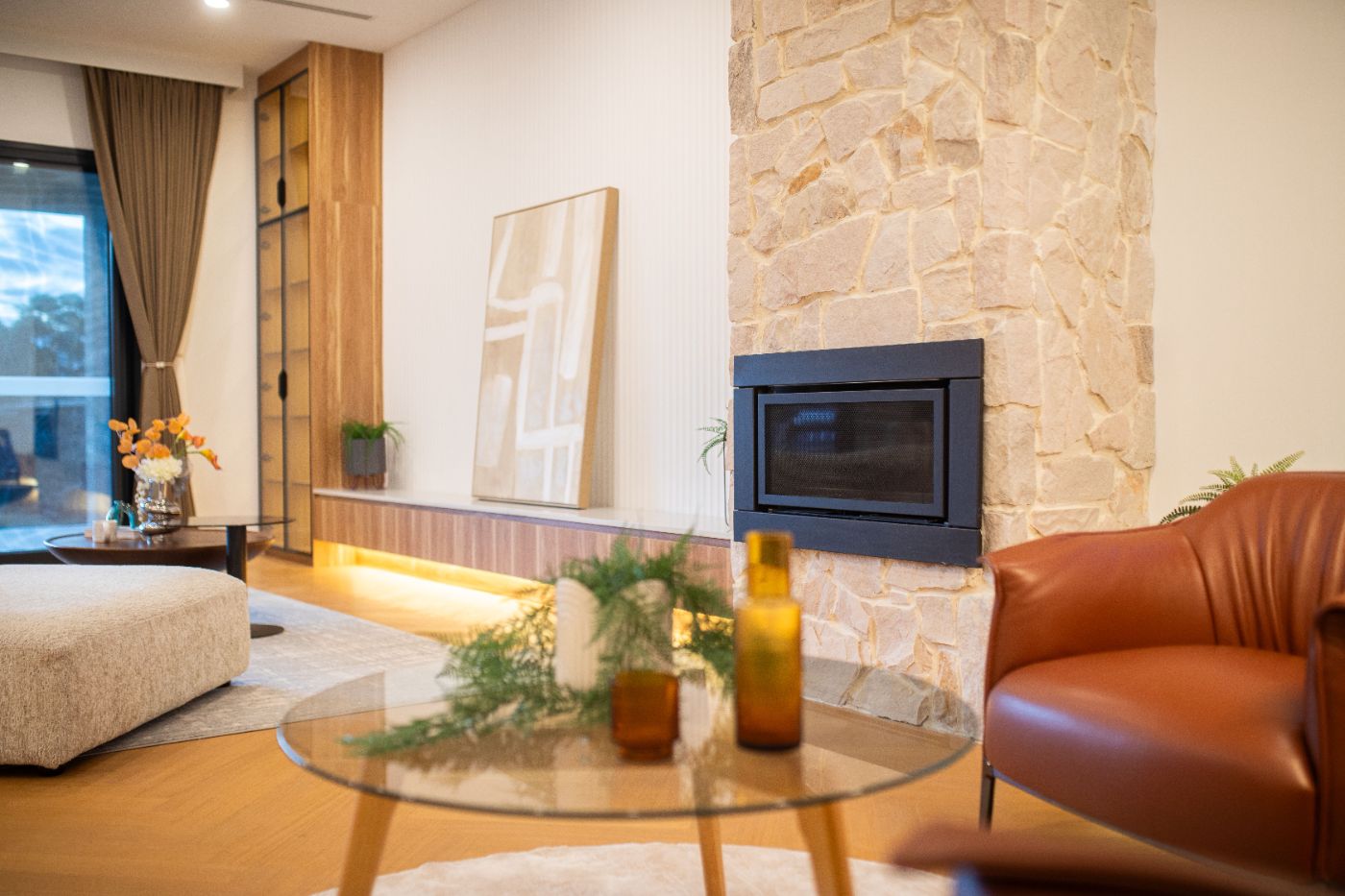 采光充足的开放式客餐厅,搭配 燃气壁炉,奢雅温暖兼具