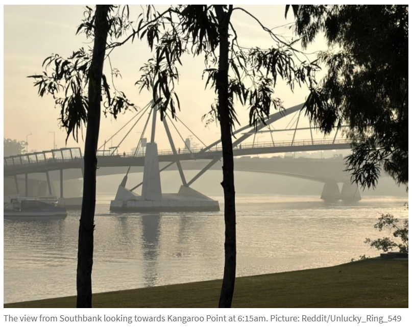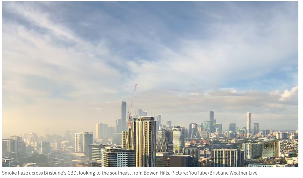 布里斯班CBD上午7点记录的空气质量指数极差,PM2.5浓度达每立方米124微克,能见度极低仅为637.6逆兆米,比周日同期恶化42倍。南布里斯班空气质量同样不佳,PM2.5浓度为每立方米76.8微克。