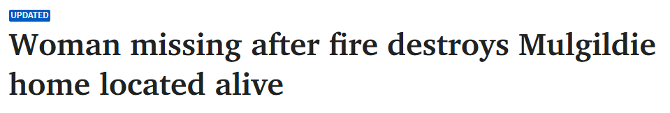 据《couriermail》2月12日报道,周三凌晨,昆州North Burnett一处民宅燃起大火,一名在火灾后报告失踪的65岁女子已被寻获。