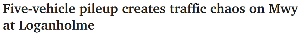 另外,在Pacific Motorway南行车道Eagleby段的Distillery Rd出口附近,还发生了一起多车相撞事故,同样造成了交通不畅。两名男性伤者已被送往医院。