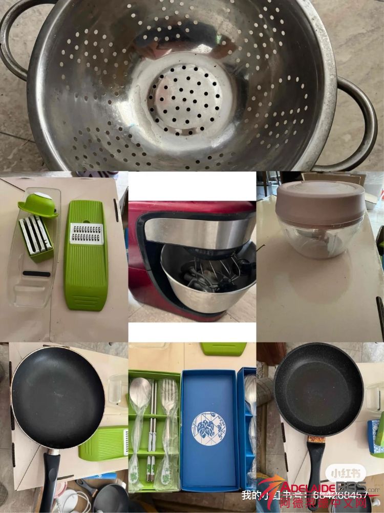 厨房闲置: 滤水篮3,手动搅碎器3,平底锅4 沙发含送货100电饭煲10 大碗汤盆面条盘等15件杯子6个,一共10刀