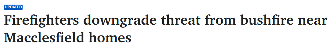 据报道,凌晨发生在南澳Macclesfield附近的林火警报级别已下调,此前火苗窜至树梢上方并迅速蔓延,迫使居民做好撤离准备。 约80名CFS志愿者驾驶20辆消防车,奋力控制这场草地和灌木林火,该火势"目前对生命或财产 ...
