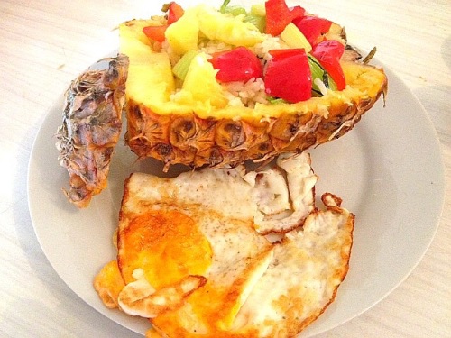 夏威夷菠萝炒饭,香甜可口!还有果盘,今天水果大餐home ...